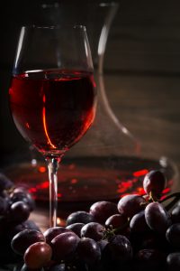 Glass of red wine and a bunch of grapes